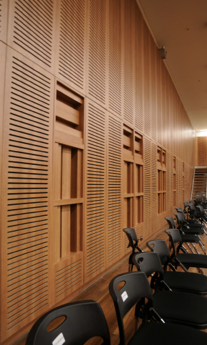 El paso siguiente es ver cómo se consigue el adecuado tiempo de reverberación en el local. En general se recurre a materiales fonoabsorbentes, en diferentes grados y según qué parte del sonido absorben.