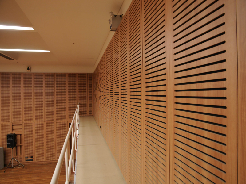 Los paneles Acusline Wood son cajas acústicas que acondicionan los espacios, revestida en maderas tecnológicas Platten.
