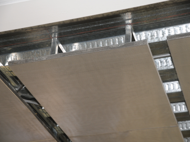 Están formados por bandejas metálicas de acero o aluminio perforado o bandejas de mallas romboidales rígidas con interior de lana de vidrio con velo negro.