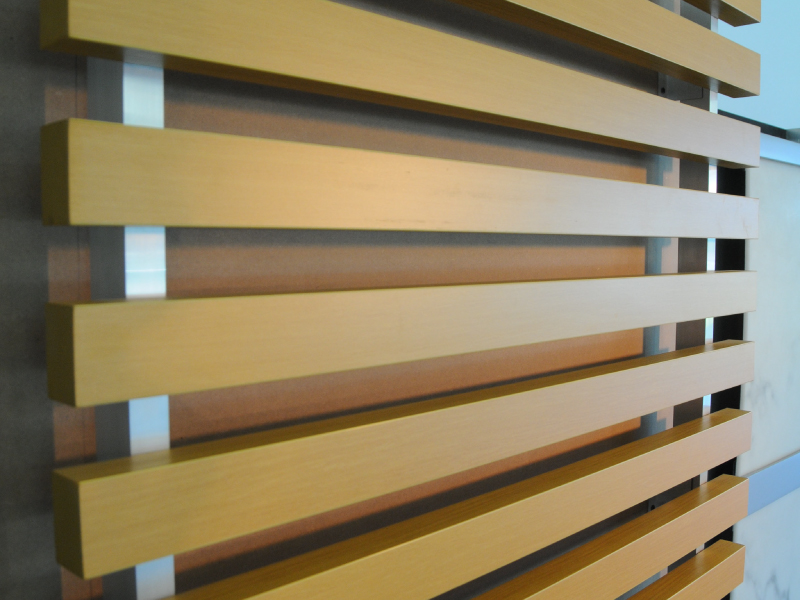 El revestimiento LAMA fue diseñado para darsoluciones acústicas en formatos de diferentes varas de maderas tecnológicas. Pueden tener diversas medidas de formas cuadradas o rectangulares generando superficies permeables acústicamente, también es posible su utilización sobre placas sólidas con ritmos según lo requiera el proyecto acústico. Las lamas están fabricadas con PLATTEN MAD melamínico y cantos de ABS con diseño y color igual a la placa. Se colocan sobre portadores metálicos, rectos o curvos, que tienen ranuras marcando el ritmo de separaciones entre las lamas.