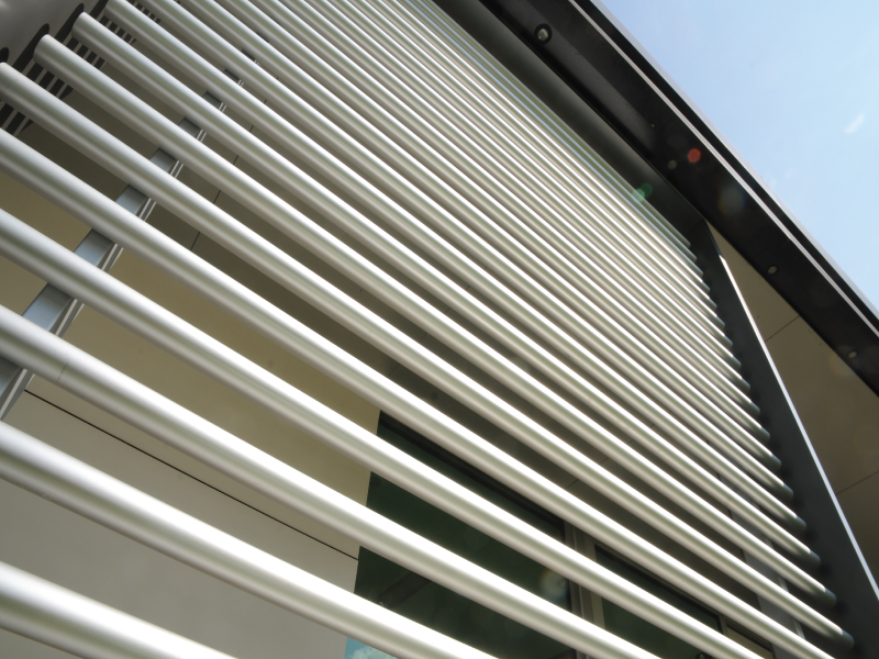 La geometría del parasol CYL genera pantallas seguras, lineales con bordes atenuados. Permite crear un tamiz arquitectónico con separación variable que puede colocarse en sentido vertical u horizontal sin fijaciones vistas.