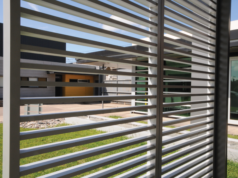 El postigo OTTURA se realiza con perfilería de aluminio de diseño propio. Cuenta con diferentes diseños geométricos de lamas, pudiendo además, desarrollarse diseños exclusivos para las necesidades de cada proyecto.