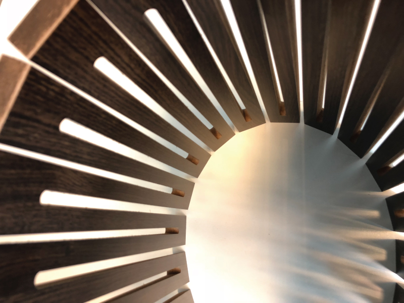 Las ranuras y perforaciones estratégicamente colocadas en el material le otorgan el movimiento y resistencia deseado para conseguir distintos radios de curvaturas posibles. Las uniones y fijaciones de estos paneles se logran ocultar con piezas y/o métodos específicos para mantener la estética del revestimiento.