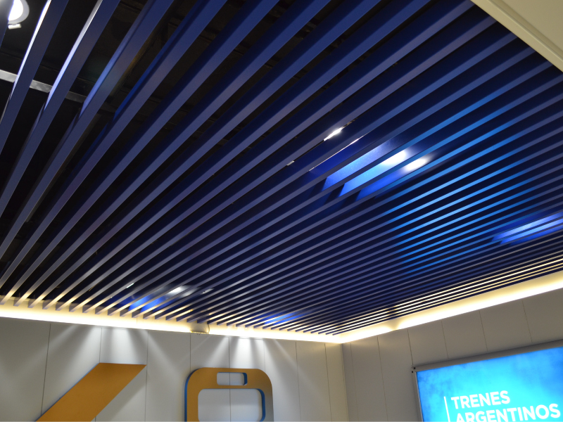 Las Cielo Lama para cielorrasos son pequeñas bandejas metálicas lisas o perforadas, fijadas a un perfil portador estándar que marca la secuencia de separación entre ellas.