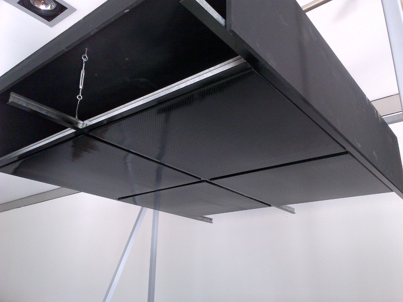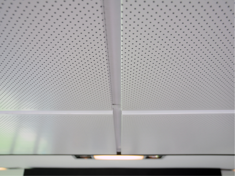 Cielorraso metálico modular de fácil registrabilidad y de bajo mantenimiento. La opción perforada es una bandeja de diseño remarcado por un perímetro liso con un