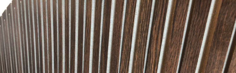 Las ranuras y perforaciones estratégicamente colocadas en el material le otorgan el movimiento y resistencia deseado para conseguir distintos radios de curvaturas posibles. Las uniones y fijaciones de estos paneles se logran ocultar con piezas y/o métodos específicos para mantener la estética del revestimiento.