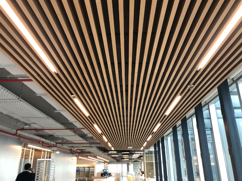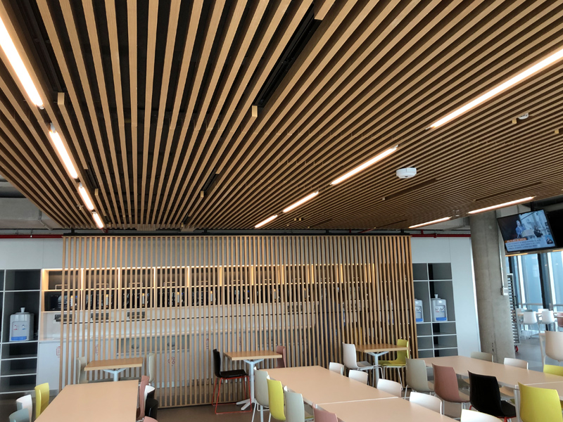 Platten Lama Cielo fue diseñado para dar soluciones acústicas en formatos de diferentes varas de maderas tecnológicas.